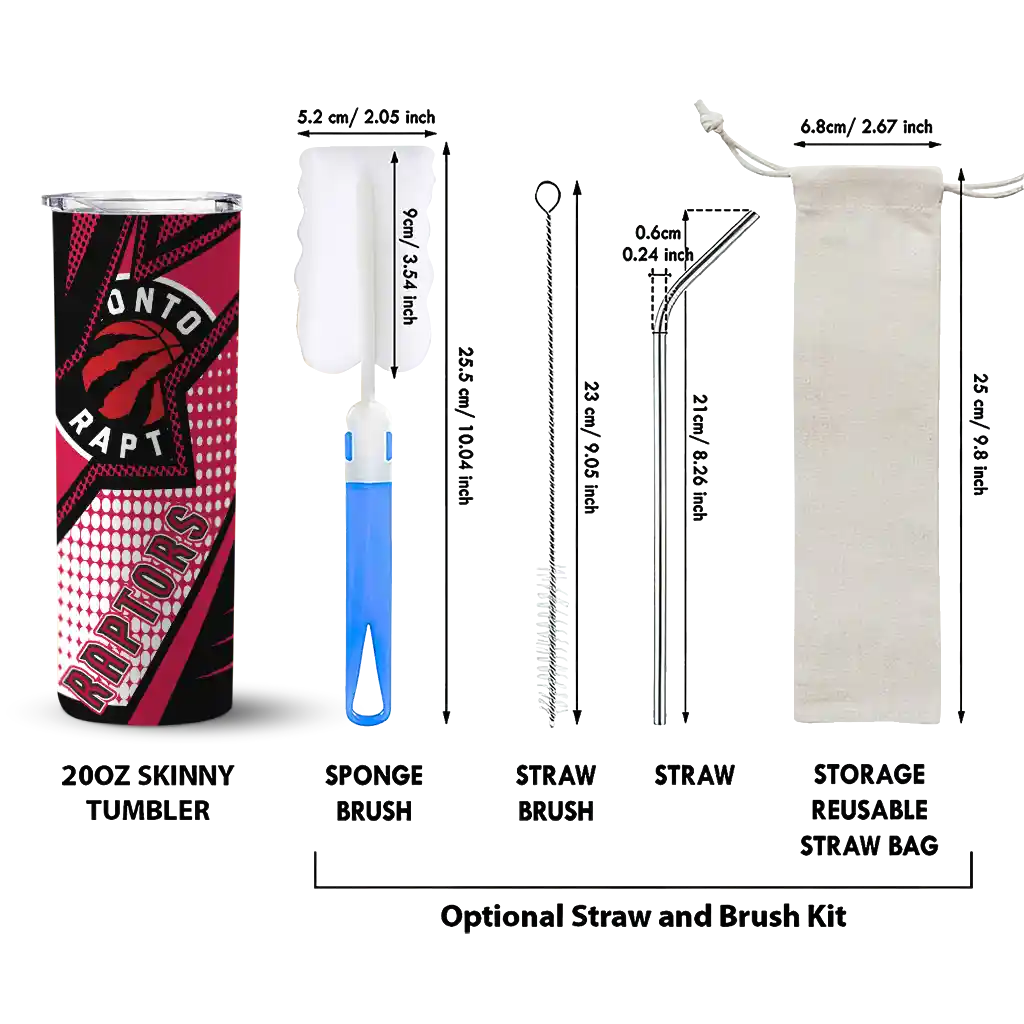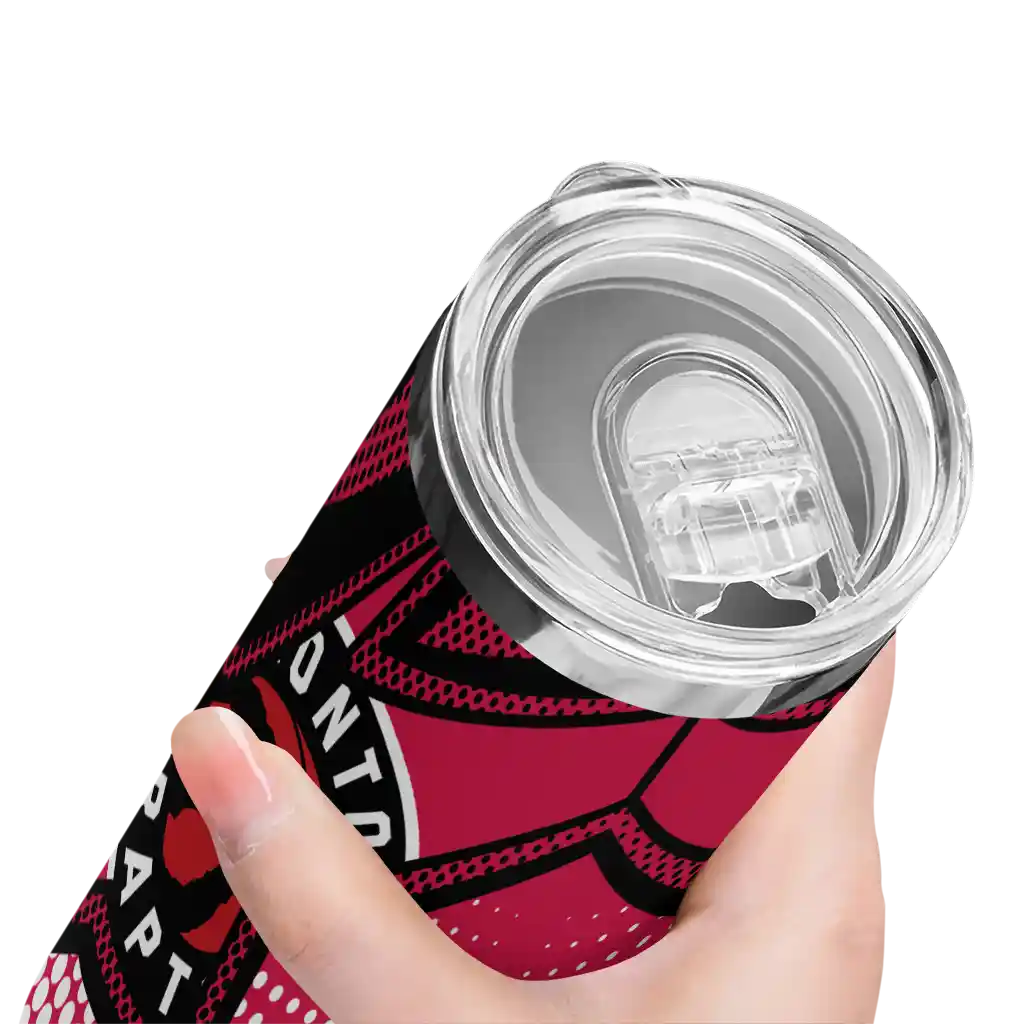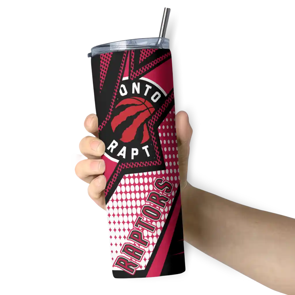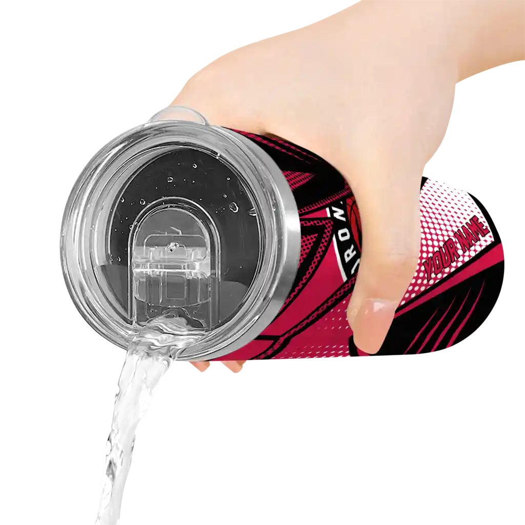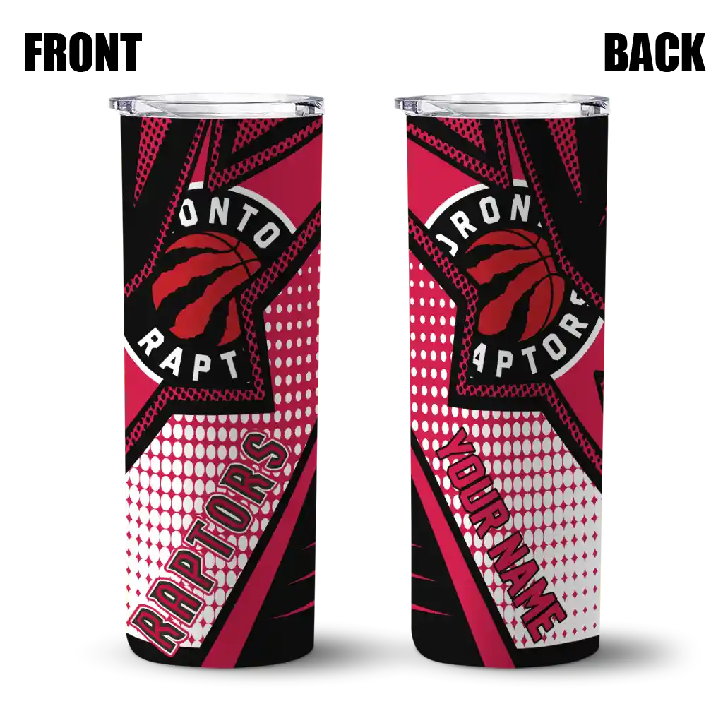The Custom Toronto Raptors Star Pop Red Black Skinny Tumbler is the perfect way to stay refreshed while repping your Toronto Raptors pride. With double-wall insulation, your drinks stay at the right temperature for hours, keeping your coffee hot or your ice-cold drink chilled no matter where you are. What's in the Box? You’ll get 1 stainless steel tumbler, 1 clear lid, and 1 removable straw. Wonderful, right? Ergonomic design, sturdy stainless steel construction, and double-wall insulation make it perfect for keeping your drinks at the ideal temperature while you stay refreshed in true fan style.
